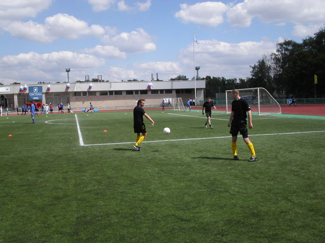 В своей группе сборная концерна "РТИ-системы" (одного из ведущих базовых предприятий кафедры ИУ4) встречалась с командами: "Наша пресса" - 1:0, Концерна "Радио-Центр" - 8:1 и сборной МГТС (серебрянного призера предыдущего розыгрыша) - 0:5. Первый матч команда концерна проводила с сборной концерна "Радио-Центр" и уверенно победила 8-1. Во втором матче ей противостояла сильная команда - сборная МГТС. Сборная МГТУ одна из сильнейших команд среди телекоммуникационных компаний и вообще в ОАО МГТС уделяется огромное внимание спорту, на каждом телефоном узле имеются методисты по спорту, проводятся различные соревнования, чемпионат и кубок МГТС среди сотрудников - одни из самых сильных по своему уровню в Москве. Среди игроков команд много бывших спортсменов, мастеров спорта и молодежи. Начало матча не предвещало крупного счета. Футболисты концерна четко придерживались оборонительной тактики, редко контроатакуя. На исходе 10-ой минуты сборная МГТС получает право на штрафной и проникающим диагональным пасом выводят на дальнюю штангу своего нападающего, который замыкает его точным ударом. Гол стал следствием явного просчета оборонцев концерна, второй мяч, забитый в свои ворота, стал следствием технических погрешностей обороны.
